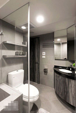 以單純的材質(zhì)界定干濕分離的關(guān)系,透過明鏡的角度規(guī)劃處理,空間感也十分足夠。