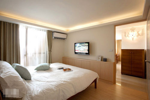 藉由大地色系作為主墻背景,簡單的柜體設(shè)計,陳述臥眠區(qū)域優(yōu)雅的休憩意象。