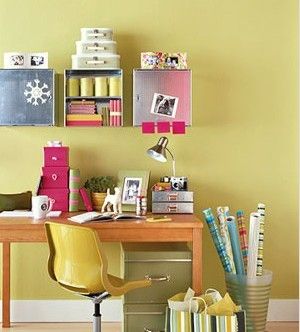 組合型的儲物方案無疑是最經(jīng)濟實用的一種,將壁柜和儲物盒等一類收納工具搭配使用,即使你的房間很小,也能將工作區(qū)打理得美觀又方便。