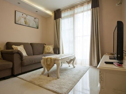 客廳的整體布置顯得寬敞大氣,采用了淡雅的色調(diào)。大大落地窗,形成了極好的采光。松軟厚實的深色沙發(fā),讓人倍感舒適。抱枕和茶幾上的臺布復(fù)古花紋,提升了居家的品質(zhì)感。帶有復(fù)古風格的茶幾和電視柜,線條優(yōu)美,給原本簡單的布置增添了別樣的風情。茶幾下鋪就的地毯,增添了客廳的舒適度。