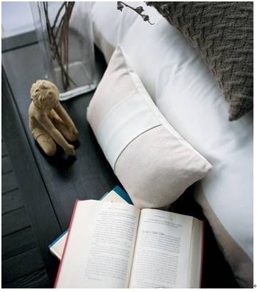 暖黃色枕頭搭配冰藍(lán)色床品,使涼意瞬間消失。