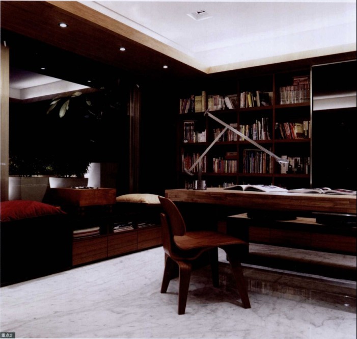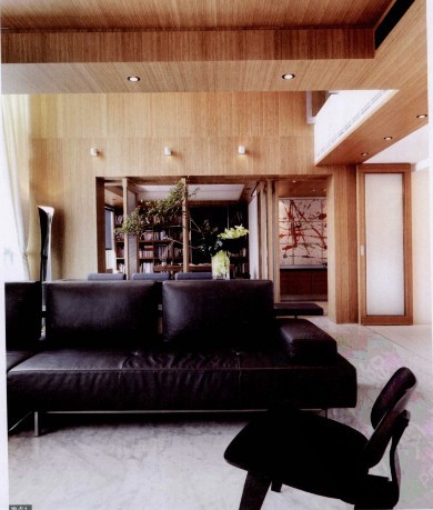 很大的房子,只有兩個人住,如何讓它更有家的感覺,而不僅僅是美麗的房子。樓中樓的挑高空間,諾大的空間應(yīng)如何通過設(shè)計延伸空間與空間以及人與人之間的關(guān)系,設(shè)計師以“折”的概念,運用不同材質(zhì)及線條的游走,讓點、線、面在對照、垂直與交疊中,把“折”發(fā)揮得淋漓盡致。公共空間以開放式處理,如廚房、餐廳及客廳利用通透性材料作隔斷,讓空間視野延伸,同時為愛閱讀的屋主打造以書為主的書墻,營造人文氣息。