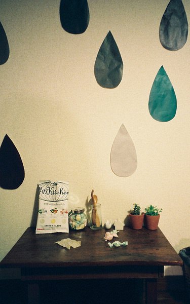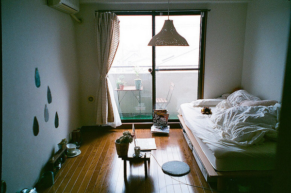 這個稍顯零亂的臥室正是MM的臥室,真正的席地式生活、赤腳、坐在薄薄的小軟墊上寫作業(yè)瀏覽網(wǎng)頁都是她一直以來的生活習(xí)慣。簡約的居家裝飾,沒有多余的家具,墻面上出現(xiàn)的水滴裝飾還是MM自己隨手剪的彩紙而已。