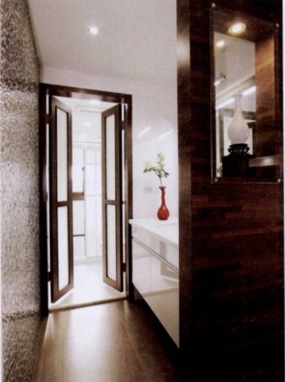 運(yùn)用小屏風(fēng)輕隔出客浴區(qū),玻璃馬賽克的墻面讓空間充滿了清透感,而雙推門式設(shè)計(jì),給予空間更多的想像。