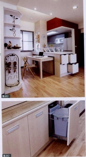 概要: 這個(gè)家的收納空間以廚房吧臺(tái)為中心,兼具了強(qiáng)大收納功能與獨(dú)特造型的寬闊吧臺(tái),讓人完全無(wú)法想象定制柜的強(qiáng)大。此外,設(shè)計(jì)師帶著業(yè)主MM跑了好幾天的建材市場(chǎng),MM也掌握了定制家具的可以隨心所欲的百變特質(zhì),預(yù)留了一個(gè)直立式冂形區(qū)域,將新購(gòu)的餐桌隱身于吧臺(tái)內(nèi),依需求而收放。