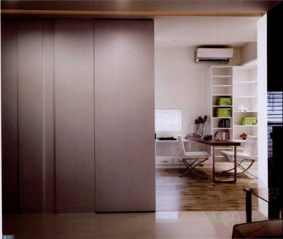 小空間規(guī)劃要善用功能結合、需求重疊及彈性規(guī)劃,發(fā)揮空間有效利用率。玄關后面連接廚房的家電收納柜。