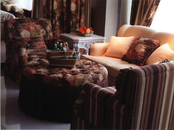 家居裝修中寬大、柔軟的沙發(fā)可以從視覺上給人以舒適、柔和的感受、同時也會給人以身心的放松。再配上低調(diào)的花色圖案,裝飾的意味更加濃郁起來。沙發(fā)在室內(nèi)空間的存在可以純裝飾性的角色。上圖向我們展示的,采用鮮艷的色彩、突出的圖案使得沙發(fā)成為室內(nèi)裝飾中一道非常突出的風(fēng)景。