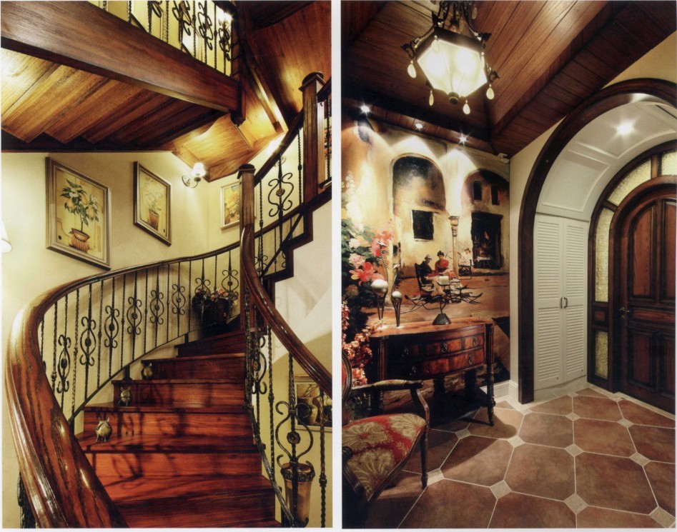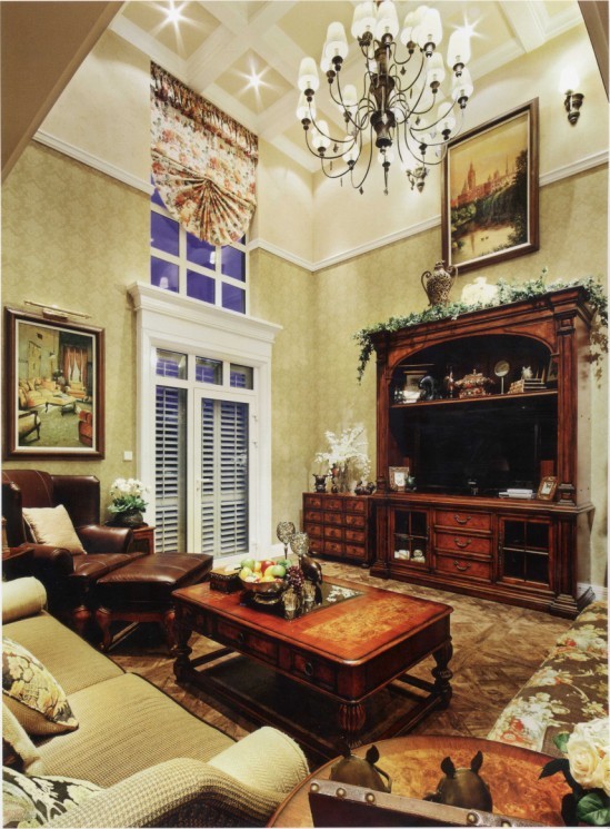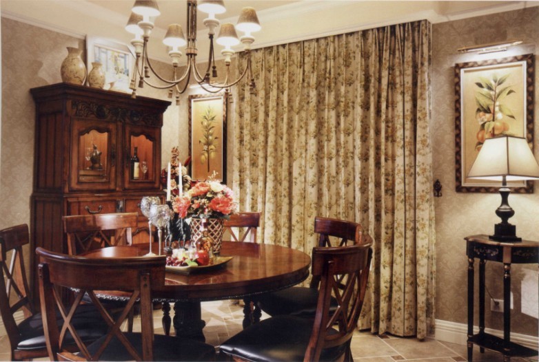 本案摒棄了煩瑣和奢華,以功能上的舒適性為導(dǎo)向,強(qiáng)調(diào)自然、休閑的居室氛圍。設(shè)計師首先確定了主體家具的款式、色彩和面料,然后以此為基礎(chǔ)來確定裝修的色彩和材料。美式家具配以仿古地板、富有古典韻味的壁紙和碎花窗簾,營造出一種令人向往的舒適、寧靜的空間氛圍。整體的空間呈現(xiàn)出自然、雅致、高品味、卻不壓抑的生活氣息。