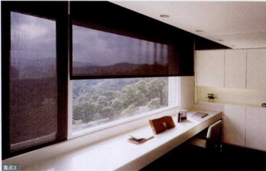 業(yè)主從事汽車制造事業(yè),他從事汽車行業(yè),也熱愛車子,他希望他的家也能有車子的速度感。設計師利用線條呈現(xiàn)空間的動感,從進門就被開花板上有如跑道般的黑色線條引導,這個屋子原本就是長形的,利手軸線界定風格,優(yōu)雅地拉開空間線條。以客廳為起點的書房不僅讓人可以欣賞窗外景色,也收納業(yè)主所珍藏的收集品。餐廳天花板內折區(qū)塊透出光線,宛如藝術品般的立體雕塑,成為空間里搶眼的端景。將實墻切割,攬入戶外美景,而陳列其中的書本,像是飄浮在樹林里,為空間增添迷人的表情。