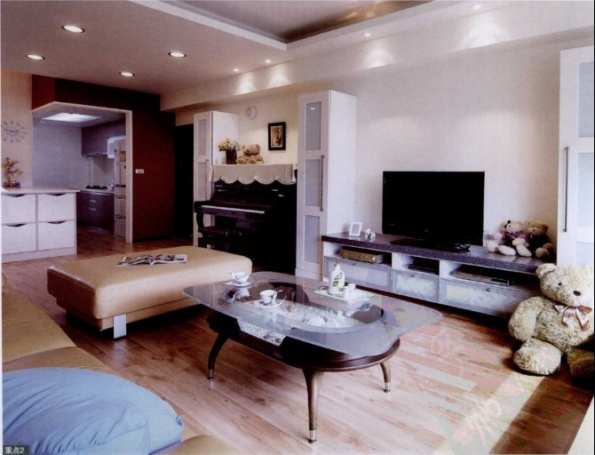 家里的GG喜歡讀書,而MM則是鋼琴愛好者。如何在客廳這個(gè)不大的空間里再融入鋼琴,又要做到與客廳互不打擾呢?設(shè)計(jì)師以三個(gè)長柜直接隔開,一邊擺放鋼琴、一邊作為電視柜,另一邊放置書柜,兼顧了GG與MM的共同需求也做到了美觀與使用的功能。