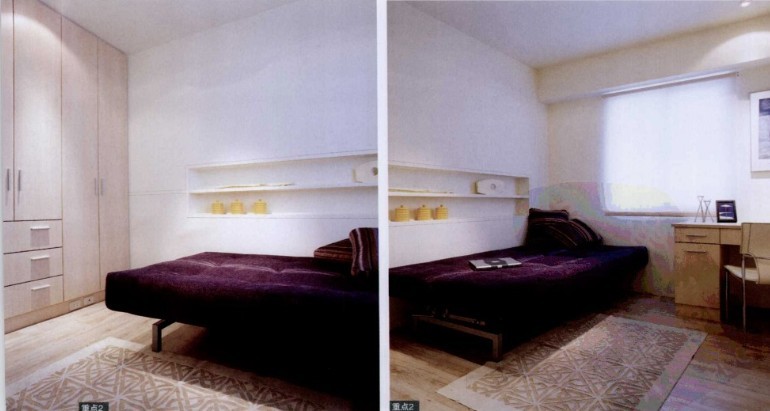 再裝修的老房子,格局方正,但墻壁潮濕,加上房子靠近位于小區(qū)最邊的位置,臨近馬路,噪音很大也是問題之一。設(shè)計(jì)師在規(guī)劃之初特別針對這兩個(gè)部分提出改善措施,包含防水層加厚、浴室改用戶外丁掛磚以及使用雙層窗戶等。除此之外,收納功能的滿足也是重點(diǎn)。由于家中人不多,不需要太多的房間,除了主臥及小朋友的房間外,只保留一間作為書房,其它的空間規(guī)劃為更衣室,解決主臥的收納問題。