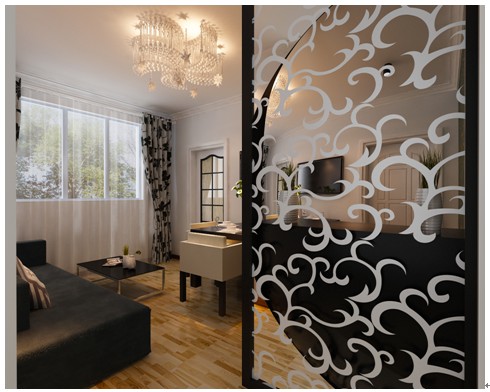 這個視角是本案例的一個重窗戶這個視角看整體布局的一個場景視角,主色調是黑白灰,因為是現(xiàn)代風格所以沒有比較的復雜的裝飾造型,墻頂面上是走的石膏角線,因為房子的層高不是很高,所以吊頂會顯得比較的壓抑!沙發(fā)背景上的3副黑白掛畫在與白色的墻面的對比詮釋出黑白色調的搭配性,進門的玄關及鞋柜藝術鏤空花格進門的美觀性很強,分開了走道及客餐廳的區(qū)域,使得空間規(guī)劃的更規(guī)范性,