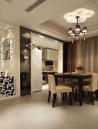 玄關(guān)柜,屏風(fēng)后是餐廳。