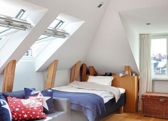 兒童房,藍(lán)色、紅色加白色的空間基調(diào)是典型的美國(guó)派裝修風(fēng)格,而美國(guó)人骨子里那種自由隨性的生活態(tài)度正適合用于無(wú)拘無(wú)束的孩子身上;天窗下面放置一個(gè)沙發(fā),在漫天星斗的夜空下,蝸居在沙發(fā)里抱著吉他自彈自唱,成了自己施展技藝的空間。