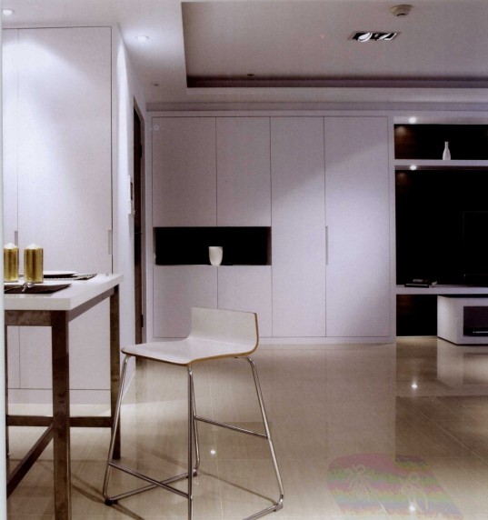 概要: 喜歡簡(jiǎn)約風(fēng)格的業(yè)主,原來(lái)是想要用黑白對(duì)比作為空間的色彩基調(diào),設(shè)計(jì)師建議業(yè)主選用深色斑馬木紋取代黑色噴漆效果,讓整個(gè)空間除了高反差效果外,仍能感受到木皮濕潤(rùn)的質(zhì)感。利用白色噴漆作為基色,從入門(mén)處收納鞋柜內(nèi)凹的壁面開(kāi)始,斑馬木紋的點(diǎn)綴持續(xù)出現(xiàn),客廳電視墻大片的斑馬木紋,呈現(xiàn)豐富的層次。