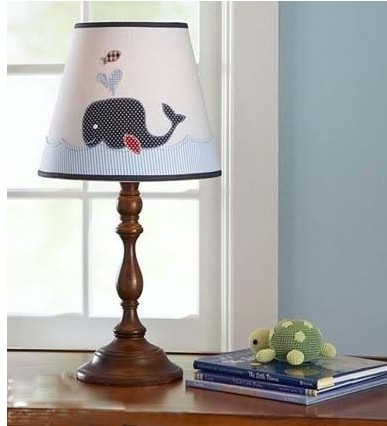 拼布效果的燈罩上,是可愛的鯨魚圖案,各種圓點(diǎn)和條紋的拼花布藝貼成畫的效果,給了孩子更多充滿想象力的空間。