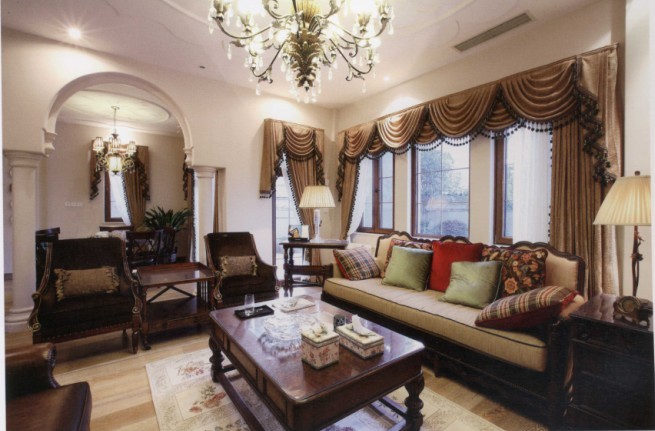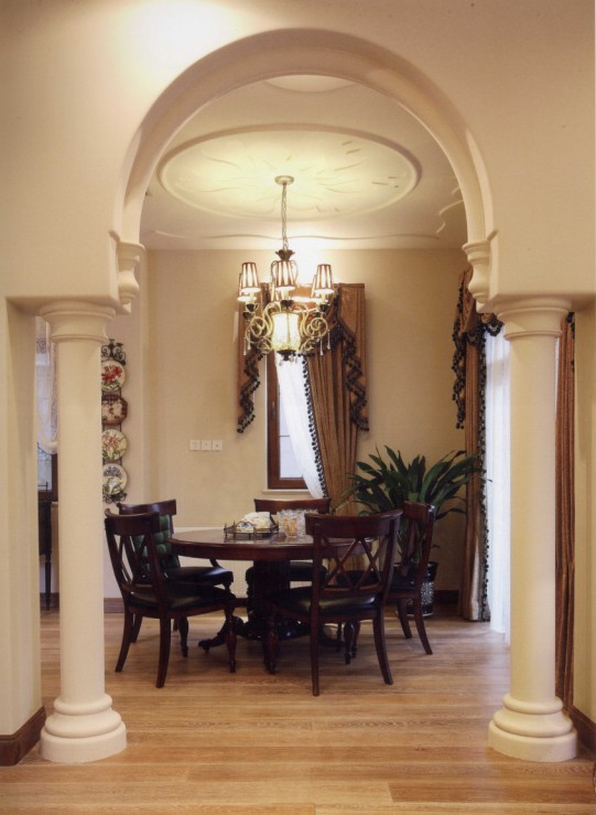 概要: 本案的住宅類型為獨棟別墅,業(yè)主為40歲左右的事業(yè)有成、具有較強經濟實力的女強人,生活質量較高,喜歡交際;服飾考究;喜愛歐式風格的莊重、典雅,尤其是對西班牙風格情有獨鐘。 設計思想:通過大氣的圓拱造型、精致的雕花圖案、色彩濃郁的布藝、墻面高純度涂料、地面的各種材質拼貼、復古的吊燈、粗獷大氣的家具等的搭配,歐式與阿位伯風格得到了完美的融合,構成磅礴大氣、不失品位的家居環(huán)境。