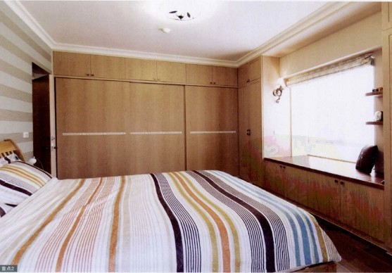 主臥里面有一面大窗戶,設計師將主臥窗戶降低并加大,連接兩邊的衣柜,成為主臥的休憩空間,而窗臺下方則是收納空間,業(yè)主對于這一設計很滿意,平時可以讀書喝茶聊天什么的都非常方便。