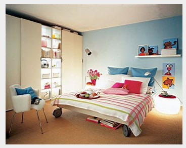 家具的色彩:家具的色彩在整個房間色調(diào)中所占的地位很重要,對臥室內(nèi)的裝飾效果起著決定性作用,因此不能忽視。家具色彩一般既要符合個人愛好、更要注意與房間的大小、室內(nèi)光線的明暗相結(jié)合,并且要與墻、地面的色彩相協(xié)調(diào),但又不能太相近,不然沒有相互襯托,也不能產(chǎn)生良好的效果。對于較小的、光線差的房間,不宜選擇太冷的色調(diào);大房間、朝陽的,可以有比較多的選擇。另外,應(yīng)考慮到不同面積不同功能的房間色彩可有不同,因而所產(chǎn)生的效果不同。