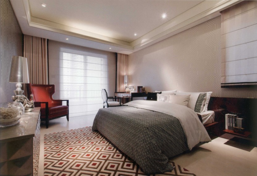 本戶型面積較大,為了打造富豪門第、都會(huì)城堡般的格調(diào),大量運(yùn)用對(duì)比強(qiáng)烈的色彩,耀眼夸飾的藝術(shù)造型突顯其不凡,以展現(xiàn)時(shí)尚莊園豪邸的大氣尺度。在空間裝修上,設(shè)計(jì)師運(yùn)用西方古典工藝的嚴(yán)謹(jǐn)精湛手法,同時(shí)將東方文藝復(fù)興的精神注入其中。整體空間氛圍傳遞著西方的浪漫,卻也輕訴著東方的曼妙----透過古典與現(xiàn)代裝飾藝術(shù)的交匯融合,顯示出復(fù)古、融匯、創(chuàng)新與再生的精神。老上海的清新魅力,為空間注入豐碩的生命力,也為居住者帶來全新的心靈悸動(dòng)。