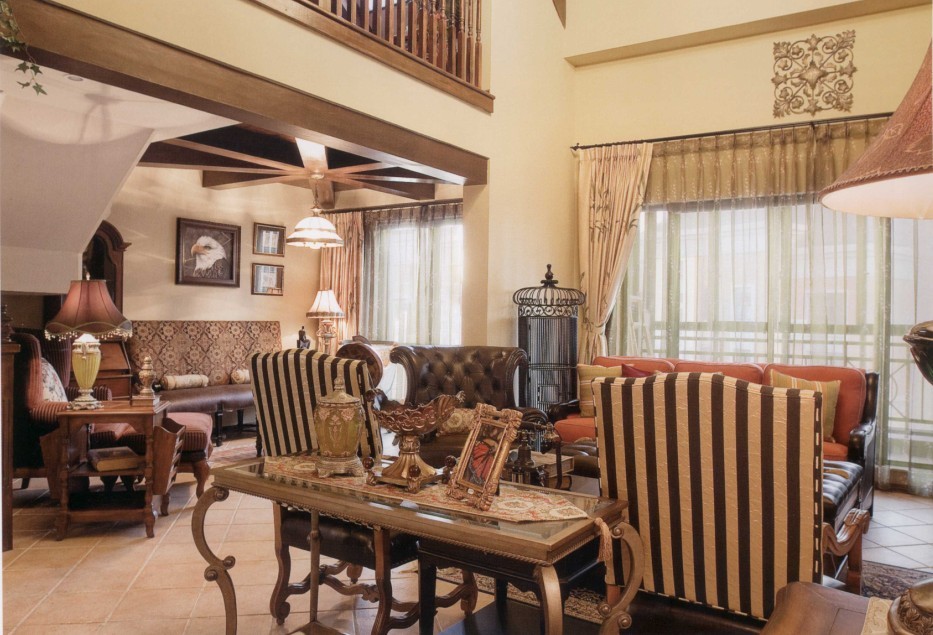 本案為美式風(fēng)格,在這個(gè)美式風(fēng)格的住宅環(huán)境里,設(shè)計(jì)師均衡考慮各個(gè)房間,并對項(xiàng)目進(jìn)行整體處理,旨在保證各個(gè)房間之間的流暢感,以盡量避免出現(xiàn)不協(xié)調(diào)的地方。首先,借用建筑坡屋頂?shù)某叱叨?,將原建筑兩層?fù)式構(gòu)架調(diào)整為三層,使空間更具層次感。其次,在格局的布控上講究對人性的極大尊重,具有獨(dú)立的會客廳、咖啡室、雪茄室、兒童游樂區(qū)和一間超過30平的主衛(wèi),使得室內(nèi)除了給人極大的心理和視覺滿足感外,還兼具舒適性。這些在普通住宅不具備的功能區(qū)域,適度地張揚(yáng)了主人的個(gè)性,同時(shí)也銘刻著主人事業(yè)的成功。