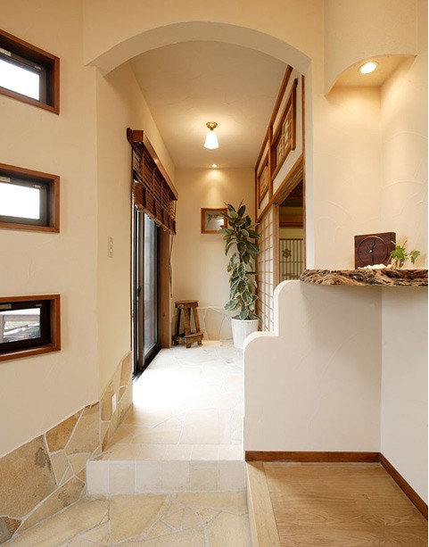 從大門進(jìn)來的左側(cè)是一條走廊,可通往日式和室。兩種不同風(fēng)格的裝修碰撞一起,卻也顯得很和諧。即使是角落處,也倍顯心思。