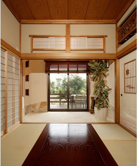 保留著原有的和室,榻榻米與木質(zhì)天花、地板搭配出清新和風(fēng)。透過大落地窗,更可飽覽庭院中的優(yōu)美景色。