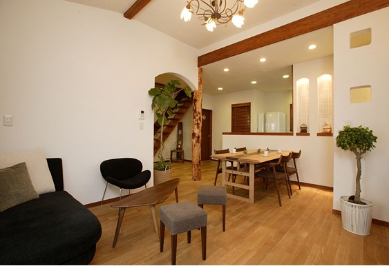 全屋皆選用實(shí)木地板,墻壁則是硅藻土墻,選材方面均主要選用天然環(huán)保材料。門廊上支撐的木柱,更是屋主特意從山上挑選回來的松木呢。