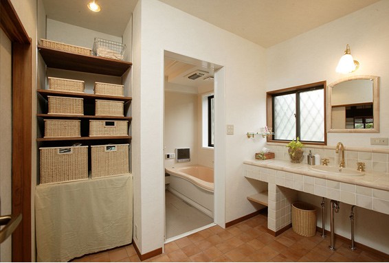 浴室一旁的空間,設(shè)計(jì)成了一個(gè)洗衣收納間,利用藤籃可以進(jìn)行很好的分類收納哦。