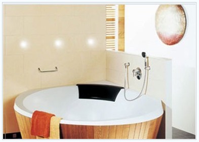 圓形浴缸的外表使用實木板條裝飾,給人自然親切的感覺。浴缸的邊沿有一個坡度,靠內(nèi)側(cè)的部分比較高,依靠起來更加舒適。靠外側(cè)的部分略低一些,進出浴缸就更安全了。父母和孩子一起洗浴,輕輕地按摩能夠給孩子帶來更多的舒適感和安全感。