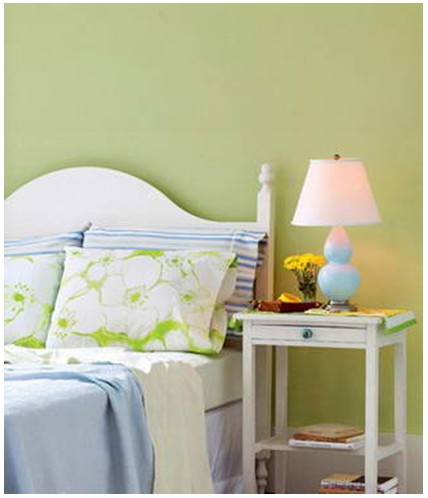 臥室是休憩的地方,墻壁的顏色不妨以淡雅寧謐為主。淡綠色就是非常不錯的選擇,既點(diǎn)綴了臥室的色彩,也不至于過分濃重而影響睡眠。