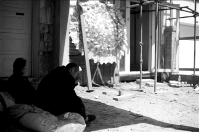 死者的哥哥嫂子坐在高虎家門前,低頭抹淚