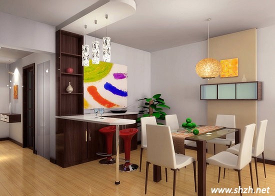餐廳依其字面上的原義就是用餐的地方,而用餐講究的是愉快的心情,所以采光格外重要,因此有效的利用燈飾或暖色的色系來美化桌上鮮美的食物及調(diào)和家人臉上的線條,可以提升我們用餐的品質(zhì)。