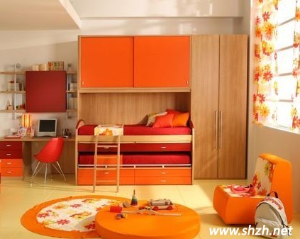 一、兒童房在家居的設(shè)計(jì)中,以暖色為主,給孩子安心的感覺,紅色和黃色的相搭,制造絢爛光線,燈光的照射將空氣也染成了可愛的橙色,而在兒童房的布置上,加上可愛的圖案會(huì)讓臥室更覺童趣十足,在柔和的燈光下,舒適的臥室會(huì)為童年留下深刻的美好印象。