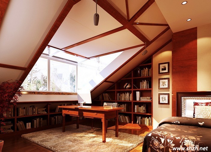當書房被安排在一些特殊的空間,甚至開辟出來和其他功能并用。比如,閣樓作為書房很僻靜,甚至可以作為一個很自我的區(qū)域,連臥室的功能也含在其中。或者有些人把陽臺的空間封起來做一個小書房,不但自然光充足,而且便于休息遠眺。還有的人把書房和影音室結合起來,看電影聽音樂和工作各自撐起了半邊天。書房的位置,不僅體現(xiàn)一個人的性情,更能給不同的人帶來不同的享受,因為書房也可以是個性的空間,不必太拘泥規(guī)則。