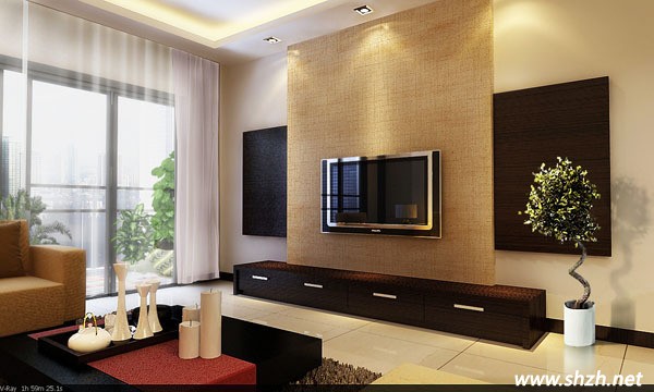 現(xiàn)在用于電視墻表面裝飾的材料種類很多,有石材類、玻璃類、金屬類、壁紙類等等。因小戶型的面積有限,所以一般不適合那些太過(guò)毛糙或厚重的石材類材料,而那些局部使用的鏡子會(huì)給空間帶來(lái)擴(kuò)大視野的效果,但要注意鏡子的面積不宜過(guò)大,否則會(huì)給人眼花繚亂的感覺。另外,壁紙類材料往往能給小戶型帶來(lái)溫馨多變的面孔,所以深得人們的喜愛。