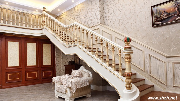常見的樓梯裝修一般是木踏腳板和木或鐵藝的扶欄。如果整體居室環(huán)境強調(diào)歐式風格,那樓梯裝飾的材料要盡量使用鍛鐵或者鑄鐵??上У氖?,有些人家里盡管擺放著中式古典家具,但是樓梯卻是用鐵藝材料包裹的,這就破壞了室內(nèi)設計要協(xié)調(diào)統(tǒng)一的原則。