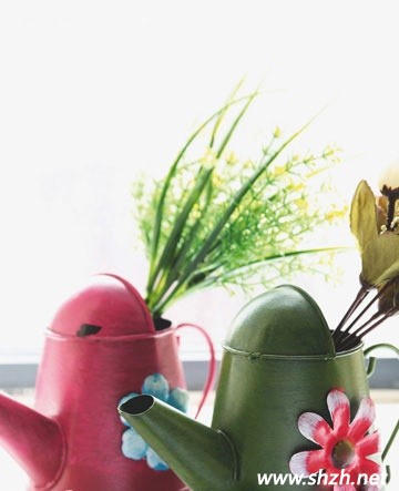 五、家中澆花使用的水壺給人看起來感覺冰冰涼涼的,那么,就為它也穿上花衣裳吧!用薄的鐵片制作成花的形狀,再粘上去,立體的效果即刻顯現(xiàn)出來了。