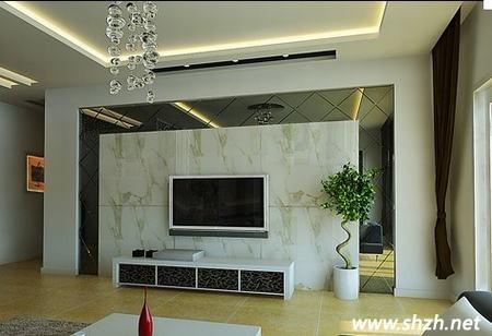 在客廳中沙發(fā)雖然居于中央位置,但是因為其高度不是與人們的視線在同一個高度,所以自然而然的我們走進(jìn)家門的第一眼看見的卻是電視背景墻,電視背景墻決定了這個家給我們的第一映像,由此可見設(shè)計一個完美的背景墻是多么的重要。