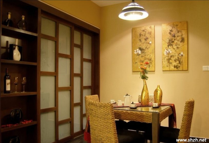 門(mén)、酒柜、裝飾畫(huà),都充滿了亞洲的元素。設(shè)計(jì)風(fēng)格以濃郁、地道、熱情為主格調(diào)。裝飾元素要突出地域特點(diǎn)
