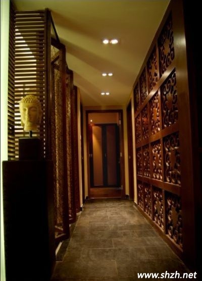 過(guò)道的裝飾物,花紋都是具有奇特色彩的南亞配飾,地板也有著同樣的效果。通過(guò)木質(zhì)材料來(lái)構(gòu)建或休閑或浪漫或異域風(fēng)情的感覺(jué),在地板的操作上也較多采用實(shí)木地板。