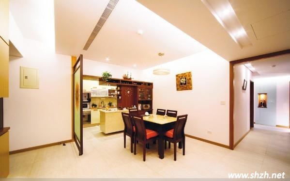 戶型再小,該有的功能一樣也不可缺少。在這個小戶型里,吧臺與餐廳緊密的聯(lián)合在一起,這不僅可以把整個家庭的就餐氣氛提高,還是一道獨特的家庭風(fēng)景線。