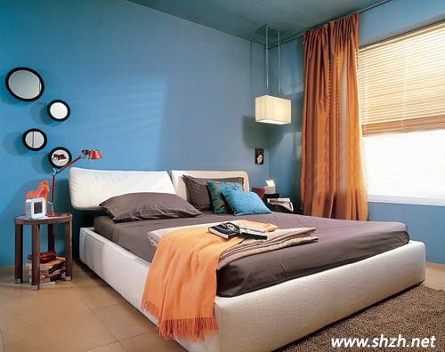 客廳淡雅別致,想不到海里的婚房臥室竟然也沒有過多華麗的裝飾,依舊延續(xù)了客廳安靜的風(fēng)格,這間簡單的臥室雖然沒有在大的裝修上下狠功夫,純藍(lán)的墻面寧靜安逸,但是我們從很多小裝飾上還是看出了海里的用心。土黃和紅褐色可以說是西班牙風(fēng)格中的主流色彩,為了不讓臥室失去特色,海里把窗簾選擇成紅褐色,與藍(lán)色的墻面對比鮮明,沒有花紋的墻面上幾個(gè)大小不規(guī)則的小圓鏡別致可愛。海里在選擇家具上也符合西班牙風(fēng),現(xiàn)在的西班牙風(fēng)格經(jīng)歷了百年的洗禮,進(jìn)化成更符合現(xiàn)代人口味的“大餐”,例如海里臥室中的床頭柜優(yōu)雅的弧形,對于細(xì)節(jié)之處也別有用心,這樣的設(shè)計(jì)放在家里就算是過20年也不會(huì)讓人覺得有過時(shí)之感。