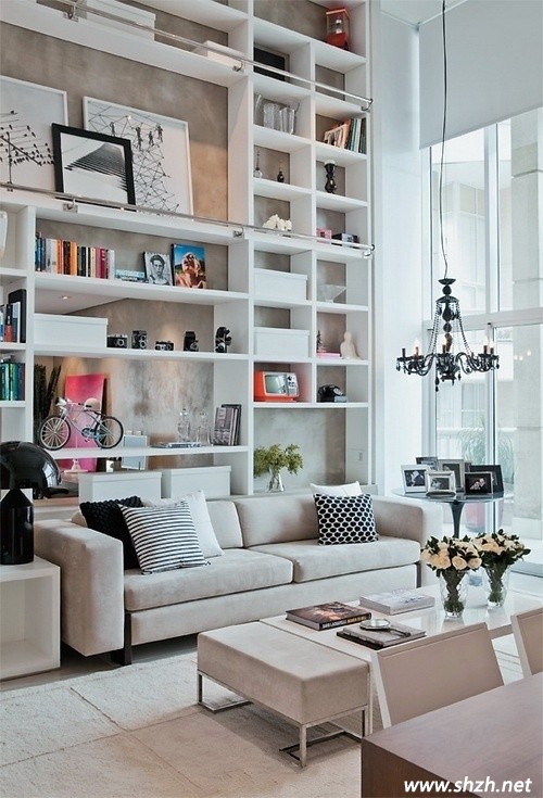 你家的客廳墻面是選擇組合式還是架子式由你決定。無論是哪一種都要記住“留白”的魅力,墻面豐滿而不擁擠才是完美的搭配。小小的留白會讓你和來訪客人思緒飛揚,其帶來的藝術效果不言而喻。