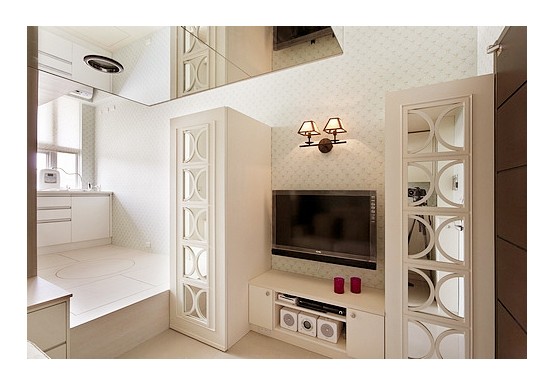 小戶型的裝修,視覺上的感覺非常的重要。這款設(shè)計,以白色為主打色彩,白色本身就有擴大視覺的功能,因此,以這樣的色彩打造無形中能擴大室內(nèi)空間。