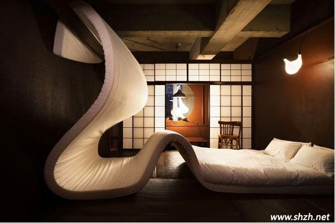 蛇造型的臥室,也許很符合2013年的設(shè)計(jì)風(fēng)格哦!一眼望去,最大的亮點(diǎn)莫過于這張床了,創(chuàng)意的設(shè)計(jì),讓人既驚喜又害怕。驚喜的是,這樣創(chuàng)意的設(shè)計(jì),讓家中一沉不變的臥室變得新奇而古怪,也讓人的心情變得十分欣喜。而害怕的是床的設(shè)計(jì),床墊造型就像盤曲著的蛇,難免會(huì)讓人深感害怕。不過,如果您不怕蛇的話,這款設(shè)計(jì)可是創(chuàng)意十足哦,不僅功能強(qiáng)大,新奇的造型也會(huì)讓你過目不忘,非常神奇吧!