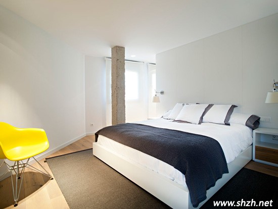 臥室的設(shè)計(jì),也許你很快就會(huì)注意到了那個(gè)水泥柱子,的確是,整個(gè)臥室最大的亮點(diǎn)莫過于水泥柱了,設(shè)計(jì)師采用了巧妙的手法,在入門處設(shè)置水泥柱,這樣就變成了入門玄關(guān),很好的保護(hù)主人的隱私,符合風(fēng)水原則。