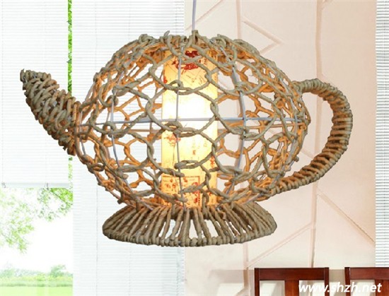 其實(shí),生活中無處不存在著創(chuàng)意,只要你大膽的想象,充分發(fā)揮你的才能,就一定會發(fā)現(xiàn)生活中,你的身邊就會有很多新奇的東西??催@款燈具,是不是很像一個茶壺?沒錯,這就是我們經(jīng)常使用的茶壺,也許在生活中你不會覺得這樣一個茶壺設(shè)計(jì)非常精巧,但在燈具上,采用了手工編制的茶壺形外罩,藤草色非常富有大自然的氣息,吊線可以調(diào)節(jié)長短,非常實(shí)用。