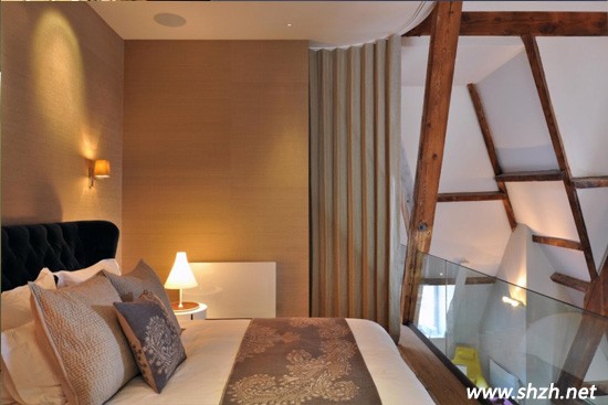 臥室的設(shè)計,采用了一塊玻璃欄桿作為阻隔,既安全,又能很好的裝飾,而且還采用了窗欄進(jìn)行遮擋,很好的做到了私密保護(hù),如果想對外開放,還可以隨時將窗簾收拾好,非常實用,又達(dá)到美觀性能。