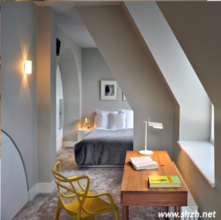 工作臺的設(shè)計,在閣樓窗戶邊上,設(shè)計了一個書桌,不僅充分考慮到這個區(qū)域的安靜環(huán)境,也充分利用了光線這些效果,學(xué)習(xí)閱讀也有了充足的光線,很好的保護(hù)了視力,非常實用。